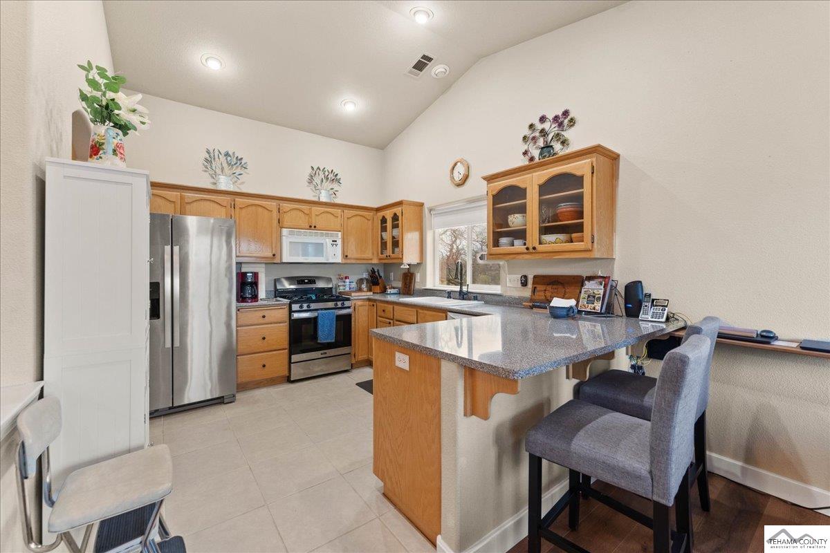 This 3 bedroom, 2 bath home welcomes you to your own private oasis on 3/4 of an acre located at the very end of the cul de sac. The bedrooms are a generous size with lots of natural light. The Master bedroom suite is spacious and the slider leads to a private deck with views. The master bathroom includes a soaking tub, double sinks, large shower, and is finished off with a very large walk in closet. The living room, dining room, and kitchen space are open and airy. The pellet stove keeps the home warm and cozy for fall and winter evenings. The garage has a large work bench and tons of storage to meet all of your needs. Lots of new additions to this home including all new vinyl plank flooring and baseboards throughout, gas range/oven, deck, iron fencing, above ground pool, retaining wall, oversized shed and BRAND NEW pergola. The pergola is crafted of wood with a metal roof and black hardware. The deck is flush with the pool so you can slip right in for a dip. The sand filter and vacuum keep the pool sparkling clean. The backyard feels private with no neighbors in sight. There are rolling hills with glorious sunsets, it is a peaceful retreat for all and incredibly quiet. This gated community has a variety of amenities including the Lake Club, Lounge, Campground, Equestrian Center, Airport, Recreation amenities, and Sacramento River access.